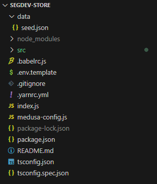 O comando acima cria uma instalação Medusa no diretório segdedv-store. A flag --seed usada acima pré-popula o banco de dados do e-commerce com produtos de demonstração.