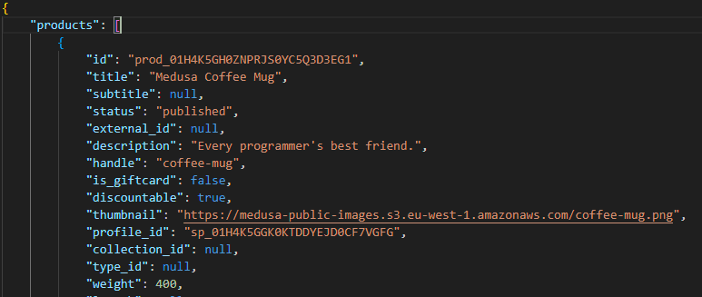Teste-o com qualquer cliente de sua escolha, como Thunder Client, Postman, ou seu navegador usando a URL localhost:9000/store/products