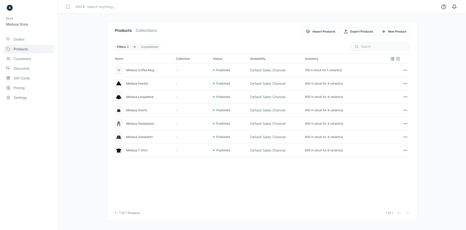 Painel de administração: os desenvolvedores podem usar o painel de administração do Medusa para personalizar e gerenciar as funcionalidades de seu e-commerce